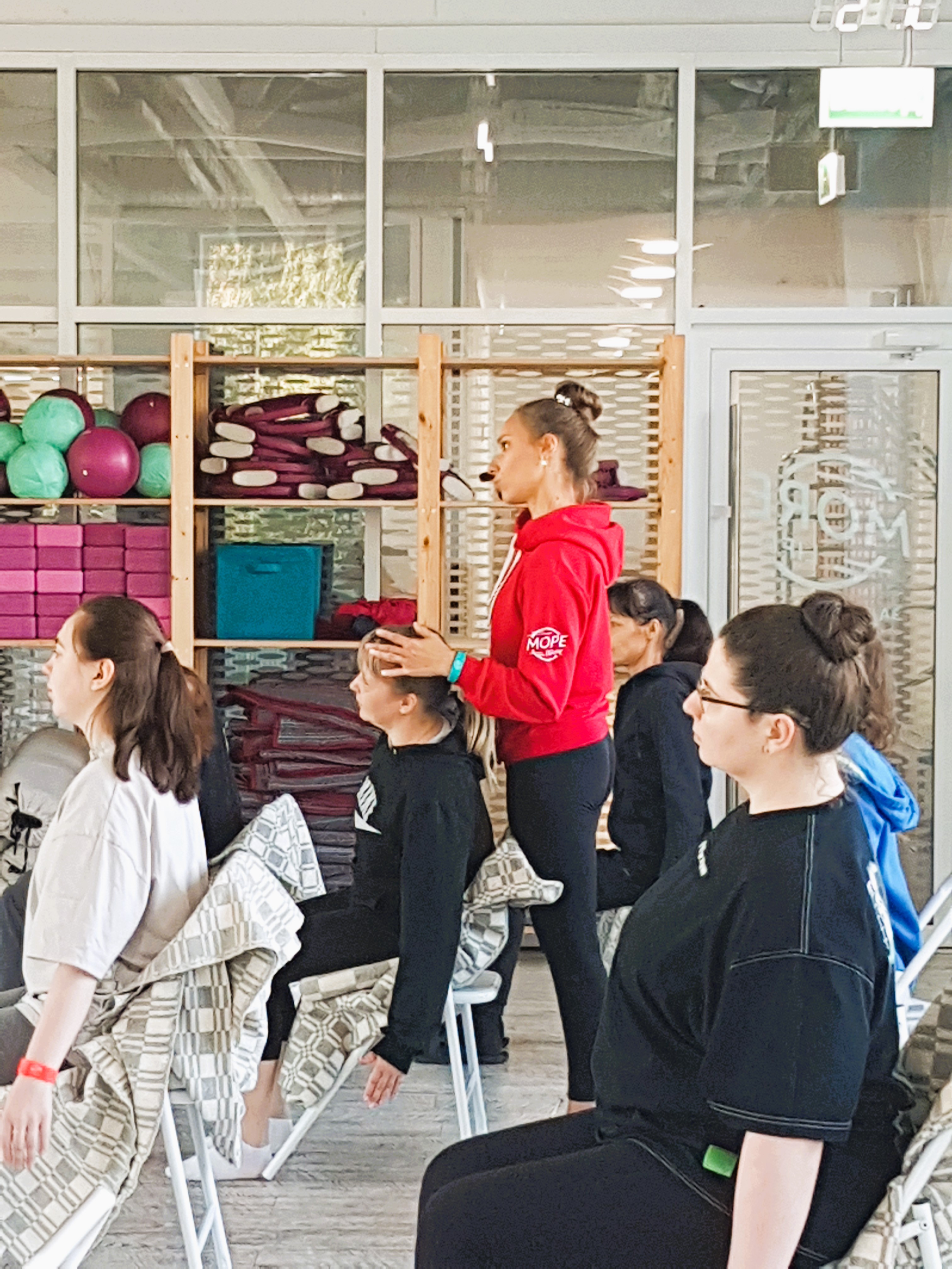 Специалисты отмечают, что важным компонентом для улучшения самочувствия при рассеянном склерозе является физическая активность, именно поэтому в проект «На трех китах» включены совместные тренировки. Это первый Кит, на котором в проекте будет выстраиваться эмоциональная устойчивость участников.