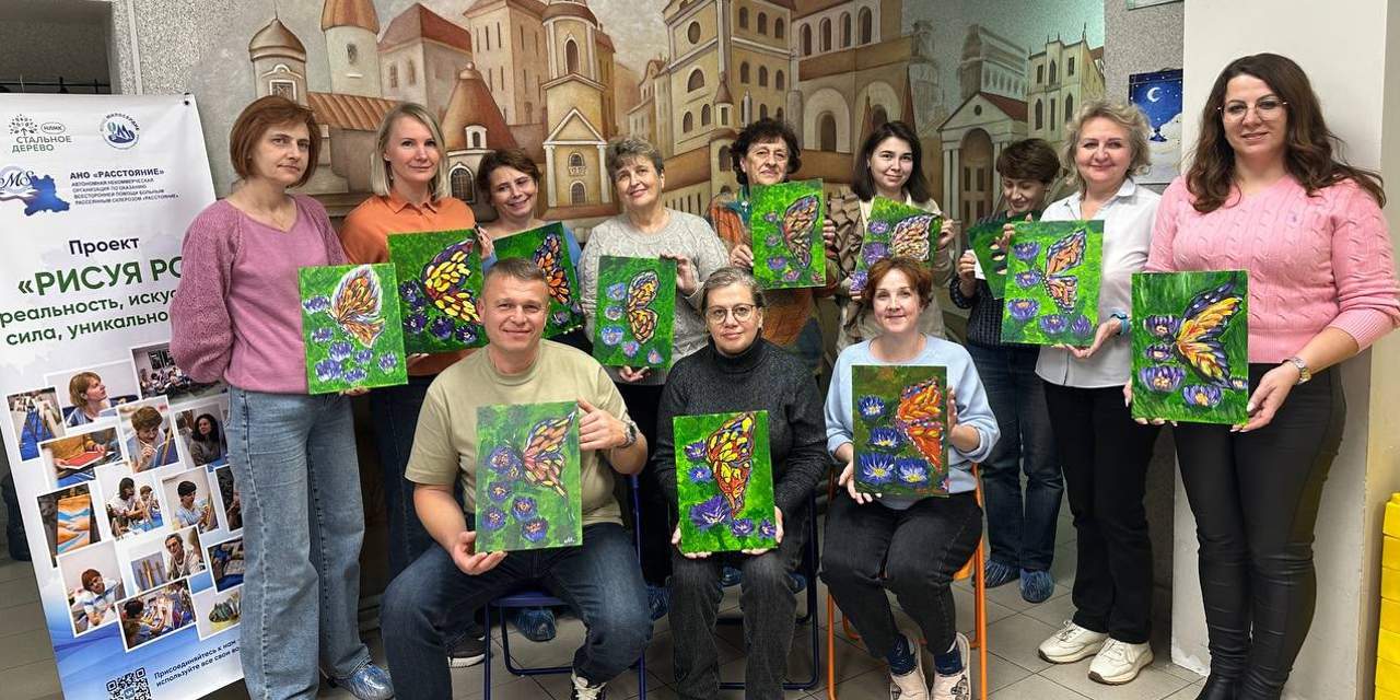 Под руководством специалиста по арт-терапии Елены Булгаковой, присутствующие осваивали возможности акриловых красок, позволяющих создавать как тонкие переходы цвета, так и объемные текстуры на холсте.