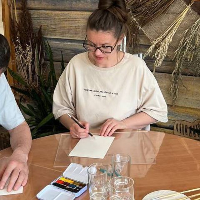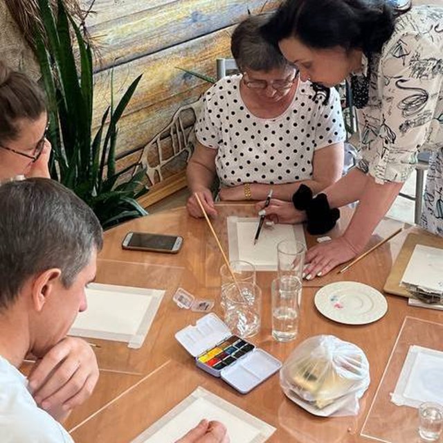Татьяна Корнева провела для гостей мастер-класс по акварели, а в этнокафе были подготовлены вкусные угощения и травяной чай.