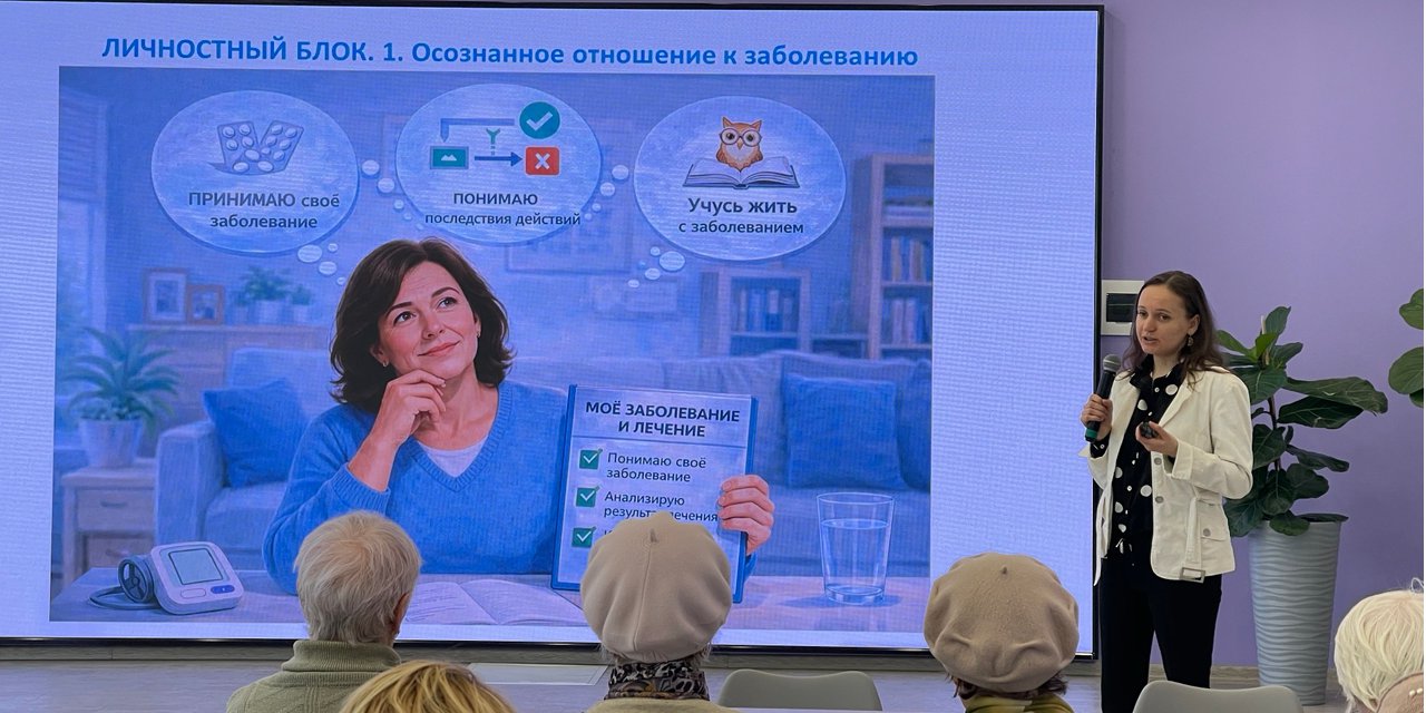 Участники разобрали, что значит быть ответственным пациентом: знать о своём заболевании и правах, быть настроенным на позитивный результат, выполнять назначения и выстраивать партнёрские отношения с врачом. Отдельное внимание уделили трем составляющим: информационной, личностной, поведенческой.