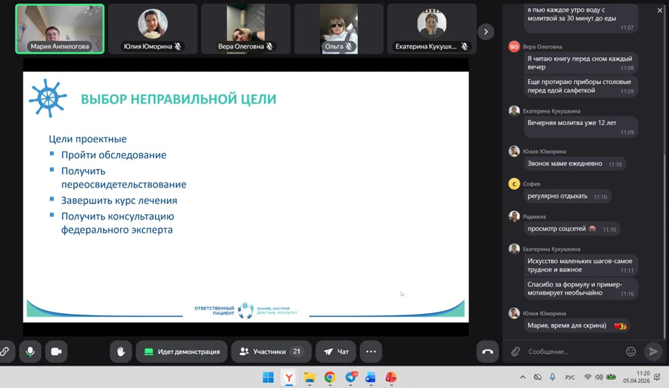 Мария Анпилогова поделилась личным опытом: «Я — ответственный пациент уже 5 лет и привычковнедряльщица — 4 года. Проверено на себе: внедрила привычки в сфере питания, сна, физической активности и даже для уборки дома.