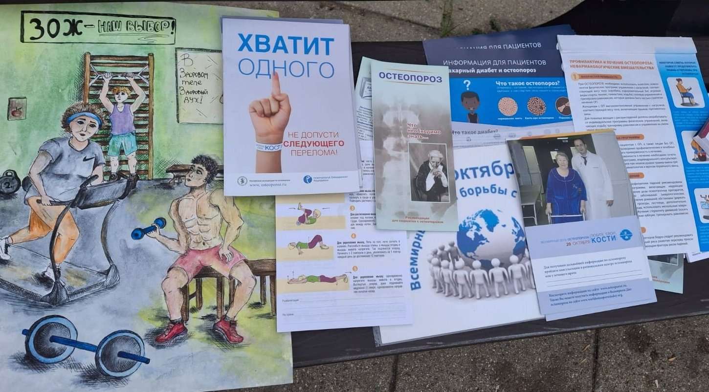 Для участников была устроена импровизированная выставка с буклетами и листовками по рекомендациям по профилактике остеопороза (упражнения, питание и т. п.), чтобы можно было взять домой и поделиться информацией с семьей.