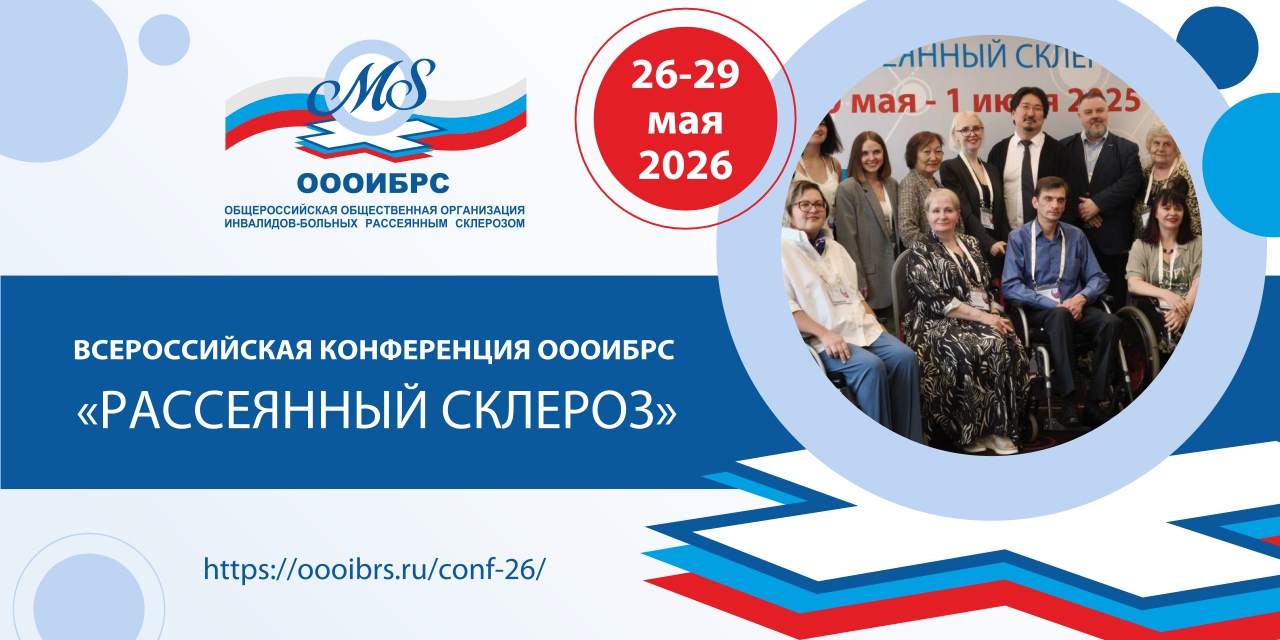 Общероссийская общественная организация инвалидов – больных рассеянным склерозом (ОООИБРС) сообщает о проведение ежегодной Всероссийской конференции ОООИБРС «РАССЕЯННЫЙ СКЛЕРОЗ», 26 - 29 мая 2025г., в гибридном формате