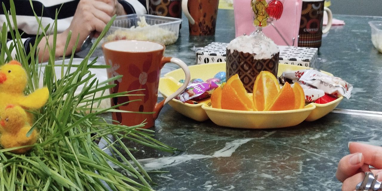 Участники проекта между занятиями собирались за праздничными столами, поздравляли друг друга, отвечали на вопросы Пасхальной викторины, вкушали угощения.