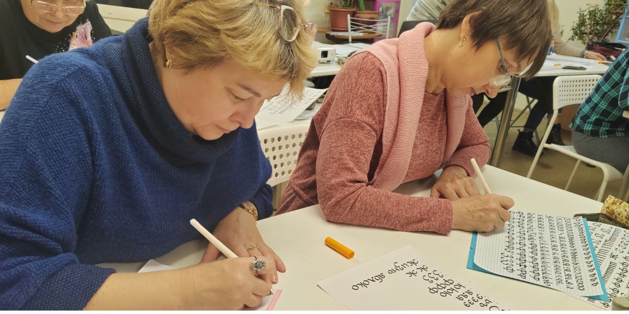 Занятия по каллиграфии вовлекают в процесс, который способствует снятию эмоционального напряжения, творческому самовыражению, развитию мелкой моторики, и, как следствие, улучшению мозговой деятельности, что очень важно при рассеянном склерозе. Также на занятиях участники узнают интересные факты из истории, знакомятся с западноевропейскими и древнерусскими каллиграфическими традициями.