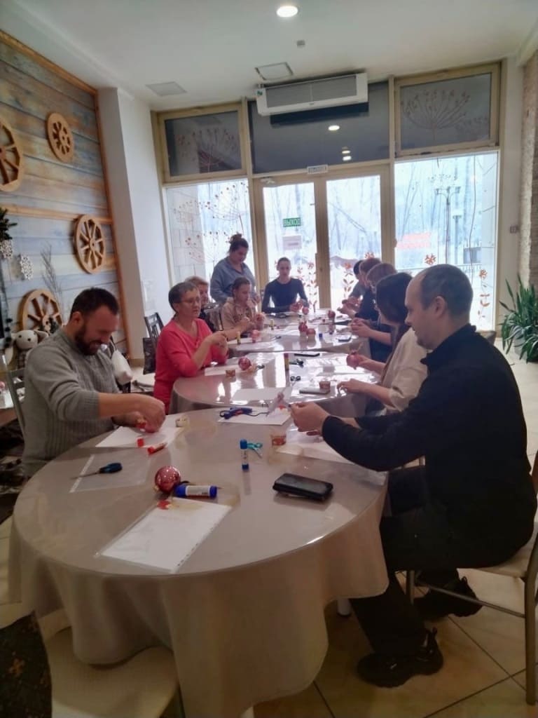 Гости с радостью приняли участие в мастер-классе по изготовлению елочной игрушки. В результате получили яркие и забавные шары ручной работы.