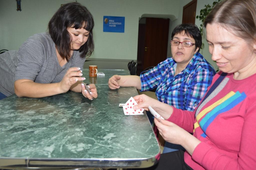 В понедельник проходили занятия рукоделием и психологические тренинги. На рукоделии мы продолжаем собирать пазл (уже осталось совсем немного), в качестве домашней работы мастерицы выкладывают алмазную мозаику, вышивают крестом, рисуют шерстью. Психология все больше носит игровой характер, все чаще проходят сеансы кинотерапии. В четверг мы продолжаем заниматься адаптивной гимнастикой, а в субботу после физкультуры идем играть в настольные игры. Играть мы продолжаем в Иманджинариум, Активити, Верю не верю (все больше и больше узнаем, друг о друге много интересного).