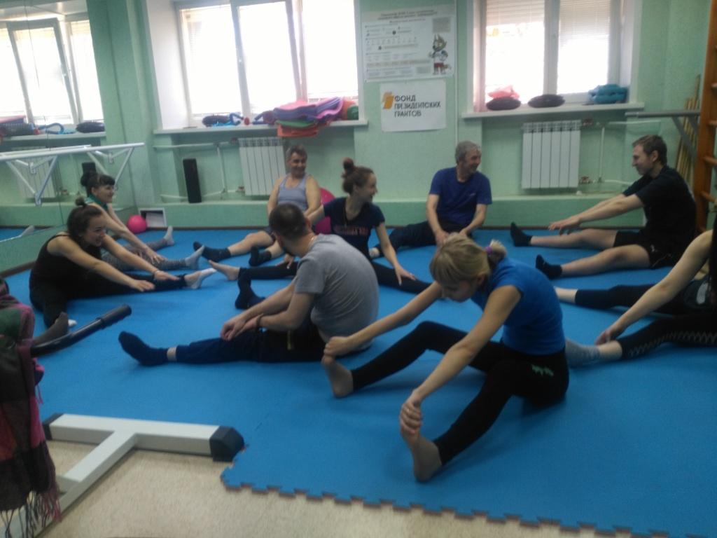 Занятия адаптивной гимнастикой на площадках города (Локомотив, Борское, Парус) продолжаются с завидным постоянством, по два раза в неделю. Люди с ограничением в передвижении всё больше и больше получают возможности размять свои мышцы.