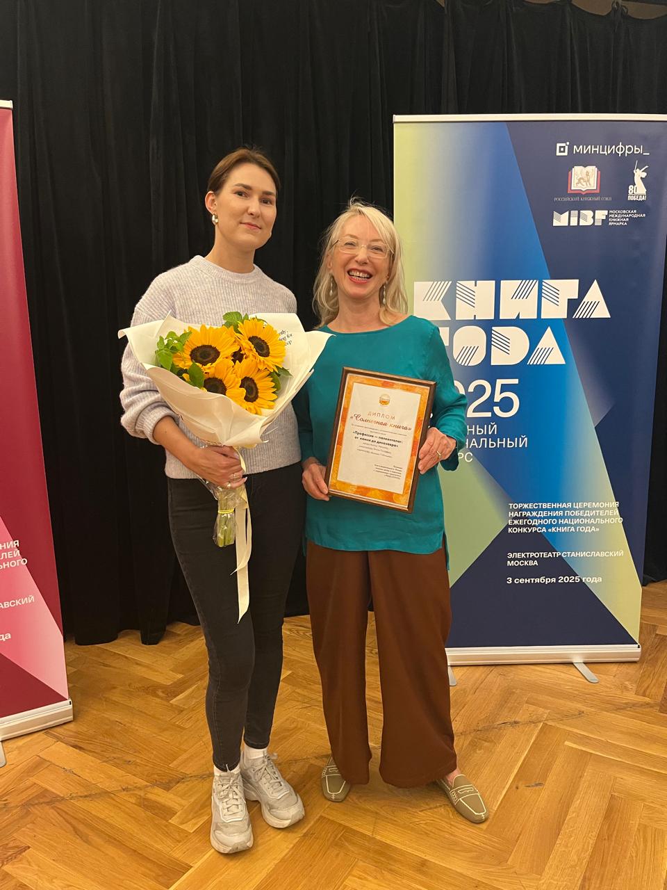 Диплом «Солнечная книга» победителям вручила Ольга Галактионова, директор ГМИИ им. Пушкина. Церемония прошла в Электротеатре Станиславский в рамках Московской международной книжной ярмарки.