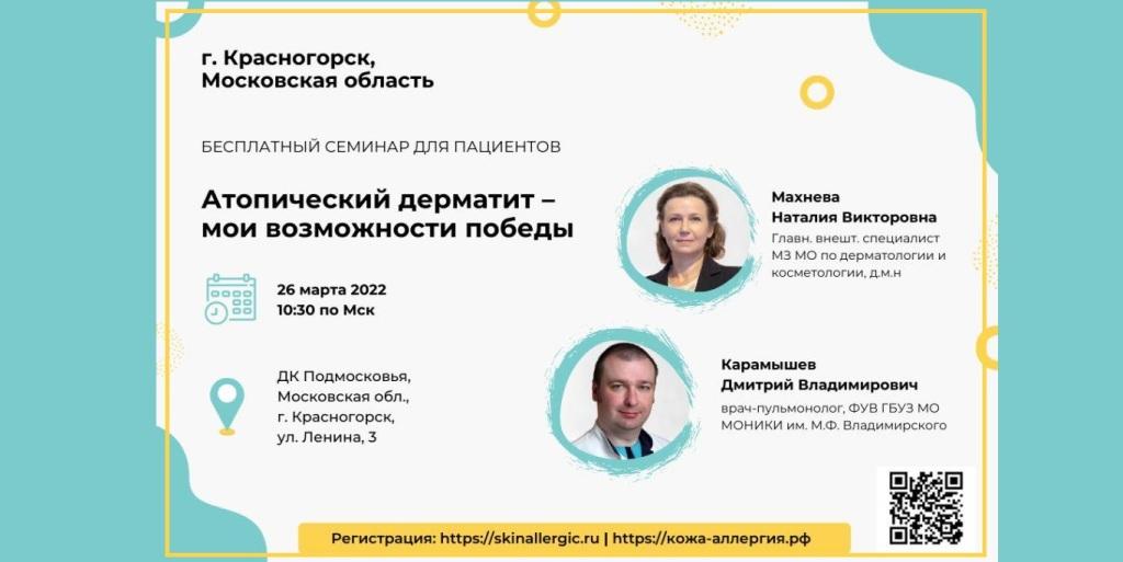 Благодаря современным методам лечения атопического дерматита, возможностям выбора в терапии, заболевание можно взять под контроль. Как это сделать, какие подходы в лечении атопического дерматита существуют рассмотрят на бесплатном семинаре в г. Красногорск Московской области. С лекциями выступят специалисты с большим опытом работы и ответят на все интересующие вопросы.