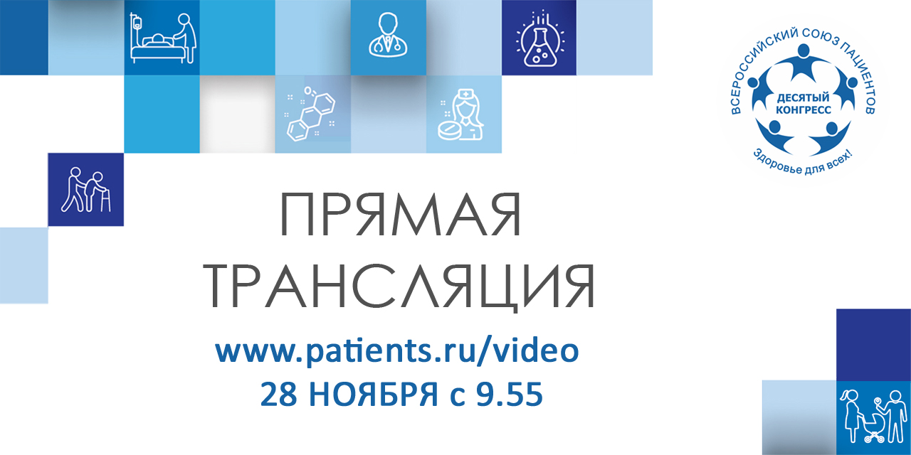 Всероссийский союз пациентов информирует о том, что прямая трансляция X Всероссийского конгресса пациентов будет вестись на сайте Конгресса 28 ноября с 9.55