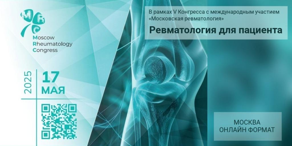 17 мая 2025 года весь мир объединится на одной онлайн-площадке — в рамках V Конгресса с международным участием «Московская ревматология» пройдет уникальное событие для пациентов: «Ревматология для пациента».
